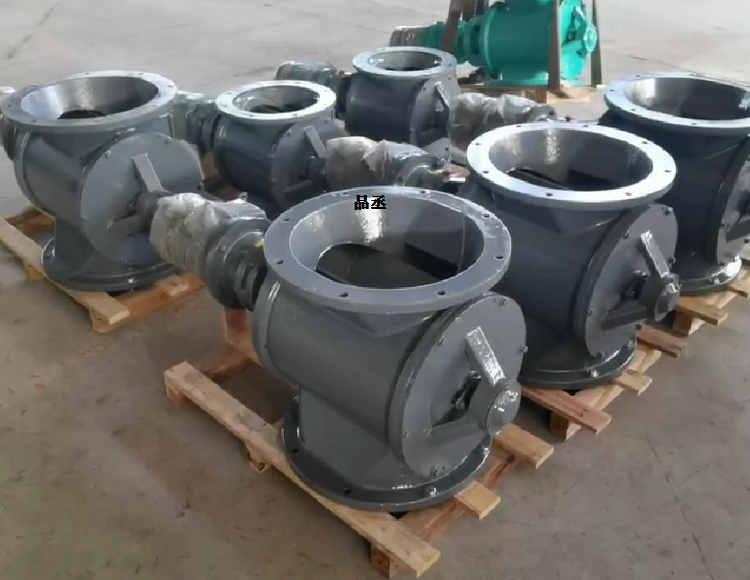 剛做的6臺YJD-B-26型三分體的星型卸料器,加上托板,裝車 。